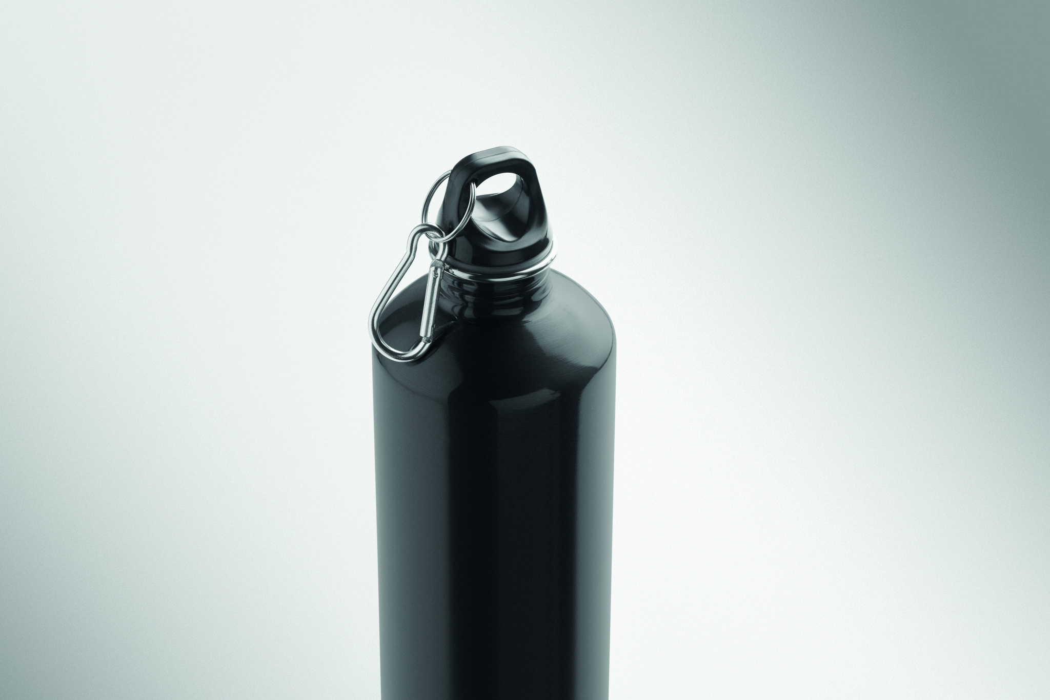 Single wall bottle (90% recycled stainless steel and 10% stainless steel) with a PP lid and carabiner. Capacity 1000 ml. As this is a single wall bottle, heat transfer can still occur.