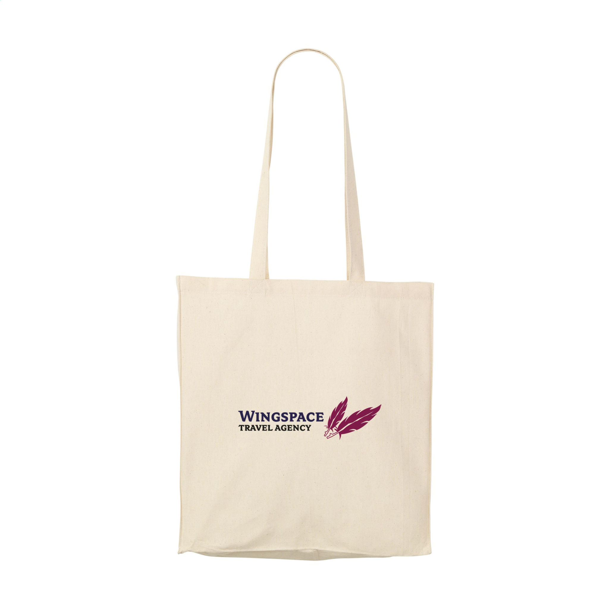 Прочная сумка-шоппер с длинными ручками. Изготовлена из 100% хлопка (165 г/м²). Объем около 12 литров.