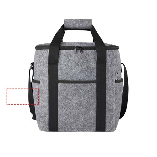 Большая сумка-холодильник, изготовленная из высококачественного мягкого и прочного фетра, переработанного по стандарту GRS. Имеет большое главное отделение (на шесть бутылок 1,5 л), отделанное высокоплотной термической PEVA-изоляцией, совместимой с пищевыми продуктами, позволяющей хранить напитки и закуски холодными на протяжении нескольких часов. Верхняя часть с застежкой на молнии, передний карман и два боковых кармана для дополнительной вместимости. Длинные регулируемые тканые плечевые ремни из хлопка (55 x 3,8 см) и 2 тканых хлопковых ручки для переноски (25 x 3,8 см) с верхней застежкой на липучке. Легко чистится. Емкость: 21 литр.
