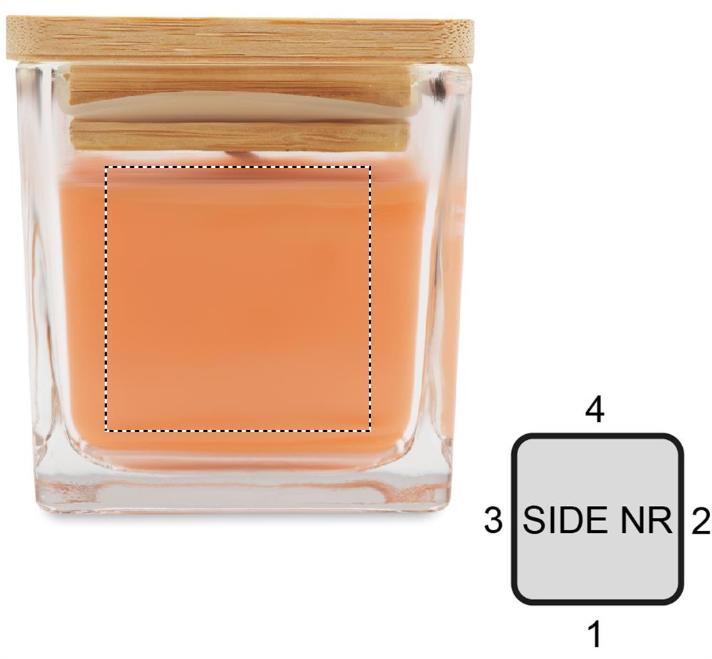 Ароматизированная восковая свеча на растительной основе в квадратном стеклянном стакане с бамбуковой крышкой. 50 гр. Время горения: 8 часов.