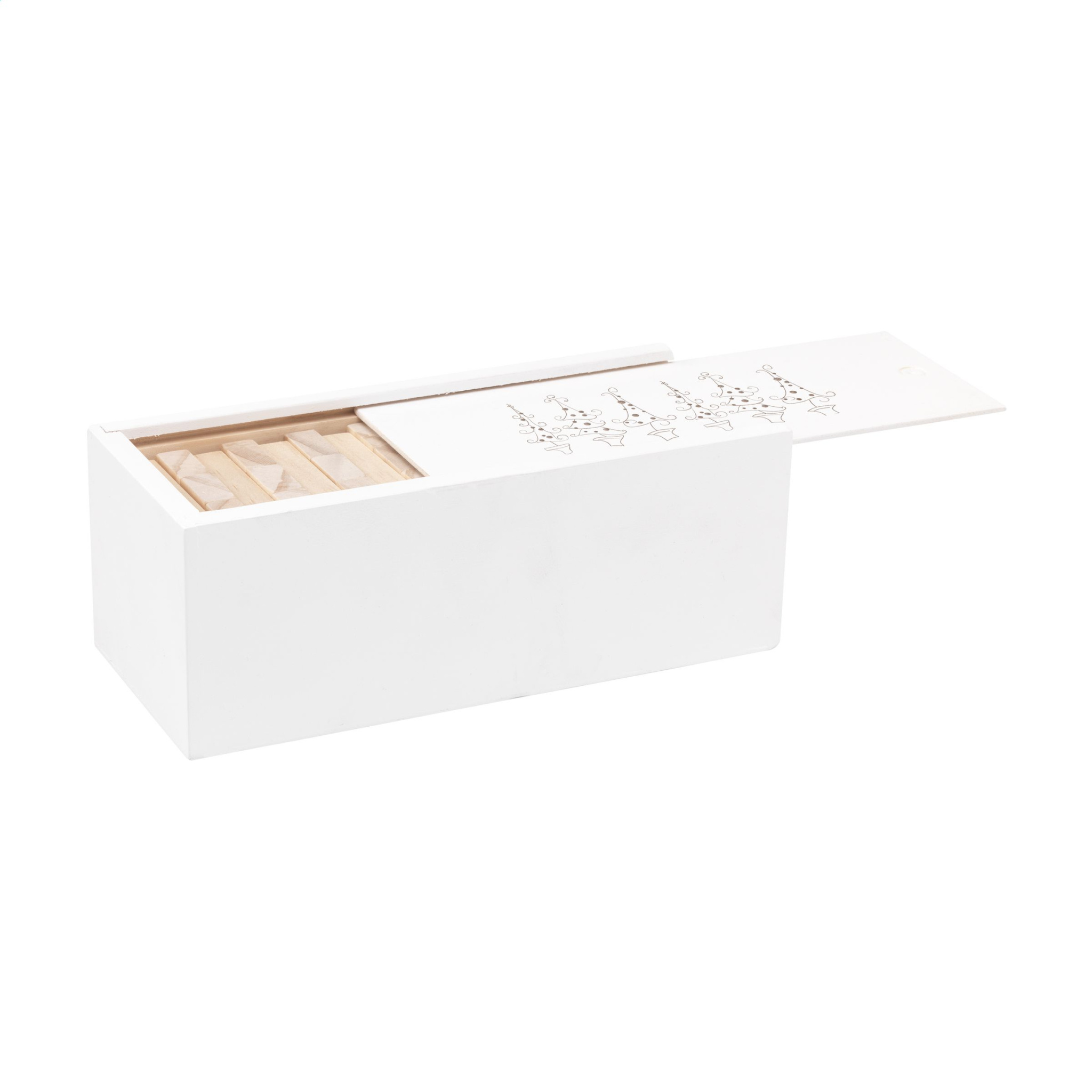 Деревянная игра-стопка (48 блоков) со стандартным рождественским дизайном. Размеры башни 16,5 x 6 x 6 см. Поставляется в белой деревянной коробке с раздвижным отверстием для удобства хранения. Включает инструкции. - Этот продукт напечатан со стандартным рождественским дизайном. Выбор из 6 различных дизайнов, как показано на изображениях. Изменить дизайн невозможно. Каждый предмет поставляется в индивидуальной коричневой картонной коробке.