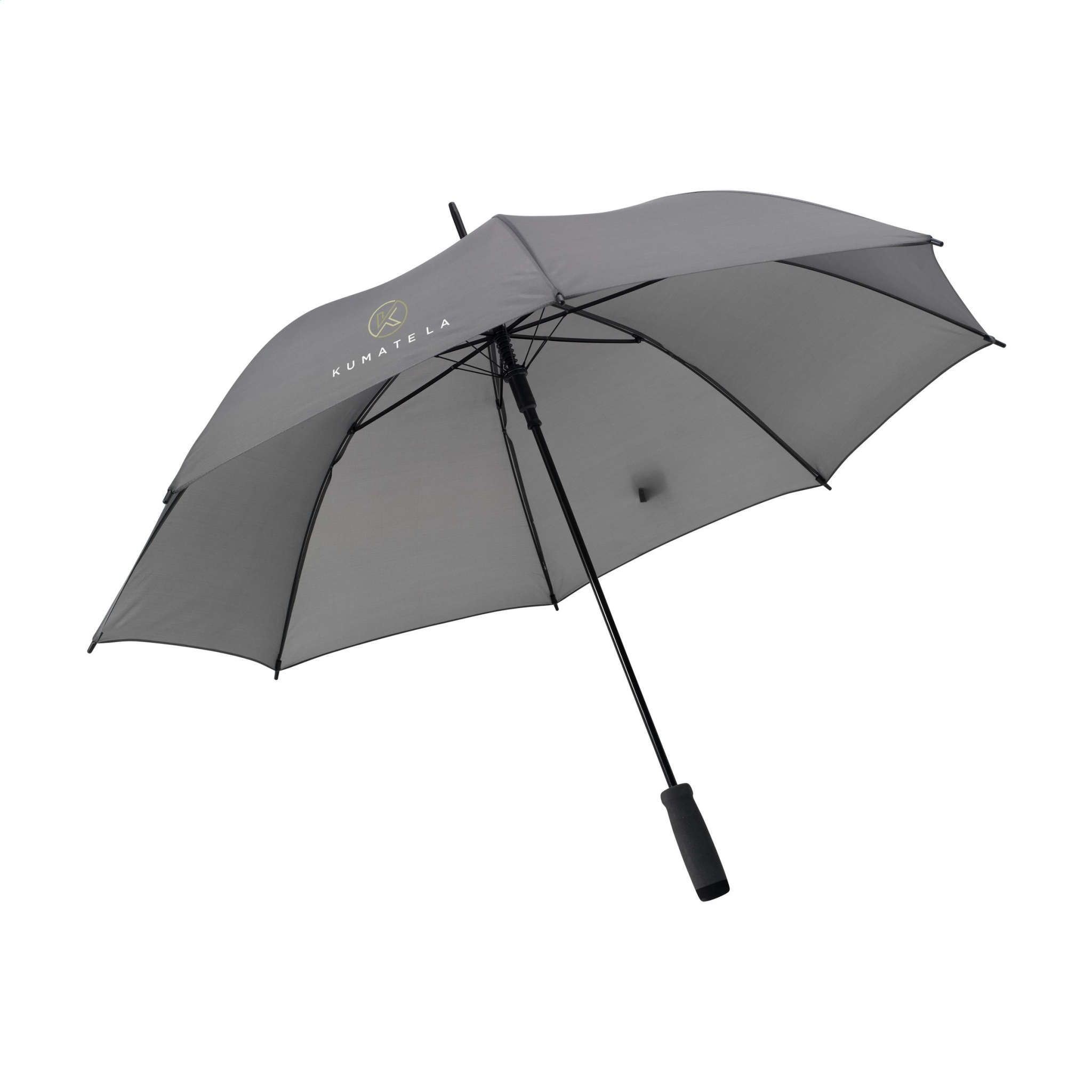 Зонт с автоматическими телескопическими пружинами. Имеет купол из полиэстера 190T, раму из стекловолокна, металлический стержень, мягкую ручку из пены и застежку-липучку.