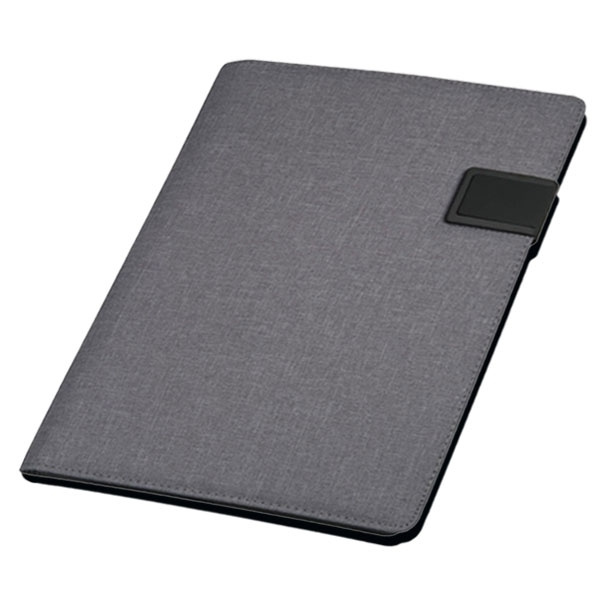 DIN A4-mapp med olika fack och öglor, mobilficka, skrivblock (20 sidor) och magnetisk stängning. Vi kommer att överföra tryck din logotyp på framsidan.