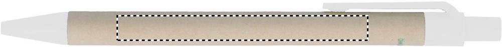 A5 anteckningsbok med omslag av hård återvunnen kartong. Inbunden med 160 linjerade sidor (80 ark återvunnet papper). Elastisk stängsningsband och pennhållare, sidomarkeringsband. Inklusive penna med kropp av återvunnet papper. Blått bläck
