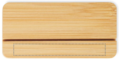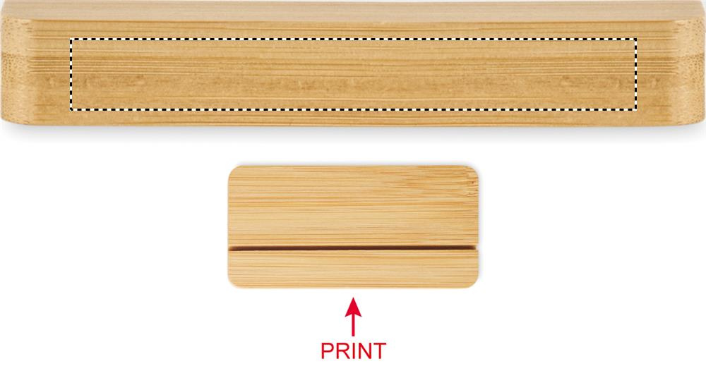 Skylt i aluminium med sublimering och bas av naturlig bambu. Idealisk för anpassad varumärkesprofilering eller display.