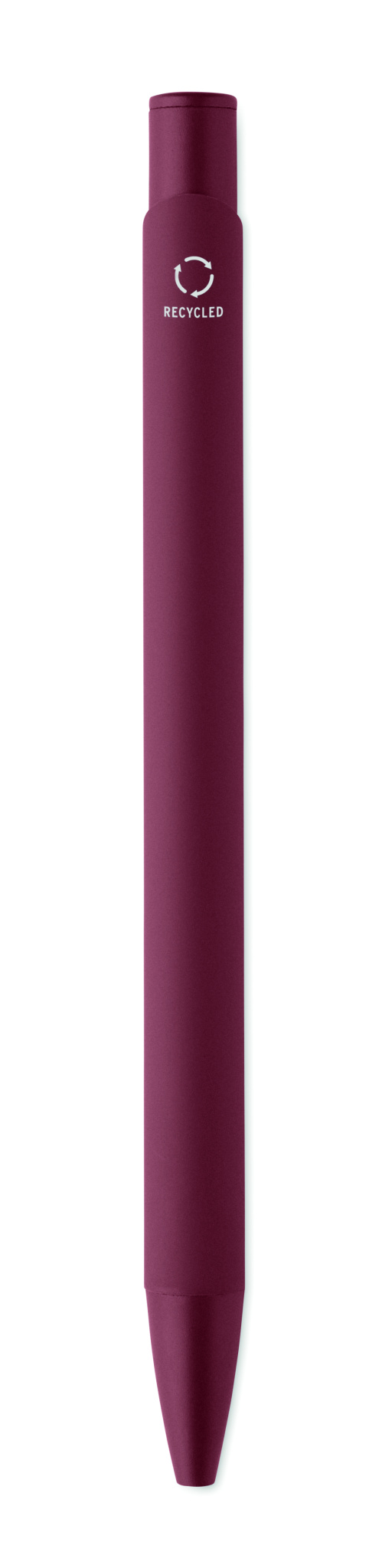 Tryckpenna av återvunnen aluminium med järnklips och färgad gummiklädd kropp. Blått bläck.