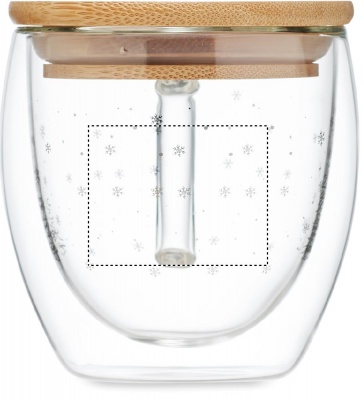 Dubbelväggig borosilikatmugg med träddesign och bambulock. Kapacitet: 220 ml.