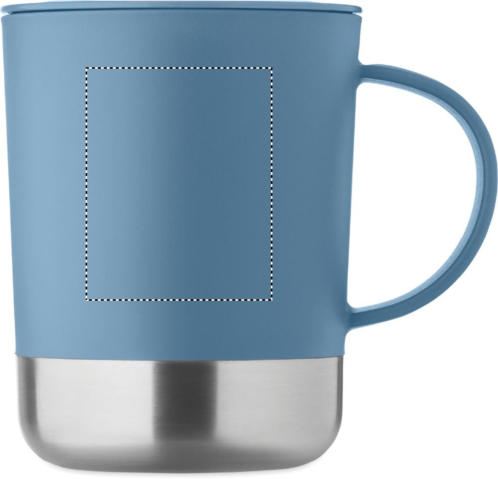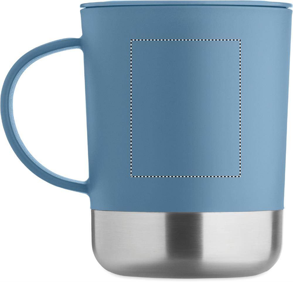 PP-mugg med bas av återvunnet rostfritt stål (90 % återvunnet rostfritt stål och 10 % rostfritt stål) och skjutbart lock av PP. Volym: 300 ml.