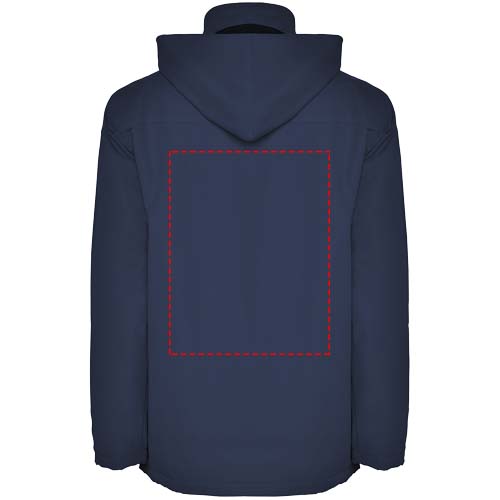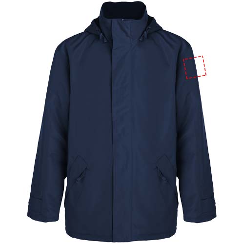 Vadderad vattentät jacka. Gjuten dragkedja mitt fram med matchande löpare. Hög hals med vikbar huva. Sidfickor med dragkedja och löpare. Justerbara muddar med remmar. Två innerfickor med kardborrband. Innertyg med dragkedja. Vattentät. Vindtät. Modellen är 184 cm och bär storlek L.