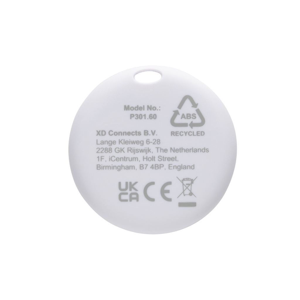 Håll reda på dina favoritföremål, oavsett var i världen du befinner dig, med denna föremålssökare i återvunnen ABS. Fäst föremålssökaren på din plånbok, nyckel eller på en väska, bagage eller till och med ditt husdjur för att enkelt hitta det med hjälp av Apples Find My App. Kompatibel med alla Apple-enheter (iphone, ipad, iwatch, MAC) Med borttappat läge för att meddela dig när du lämnar dina tillhörigheter. Med integrerad pipande signal via högtalare för att hitta dina enheter när du är i närheten. Batteritid beroende på användning upp till 1 år, därefter kan CR2032 bytas ut. Levereras i plastfri FSC-mix förpackning. Totalt återvunnet innehåll: 50 % baserat på total produktvikt. RCS-certifiering säkerställer en helt certifierad leveranskedja för återvunnet material. PVC-fri.