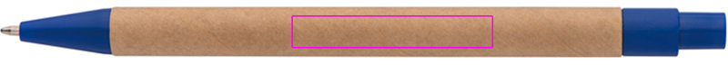 Kulspetspenna av återvunnet papper och färgade plastapplikationer, blå skrift. Din logotyp är tryckt till höger om klippet.