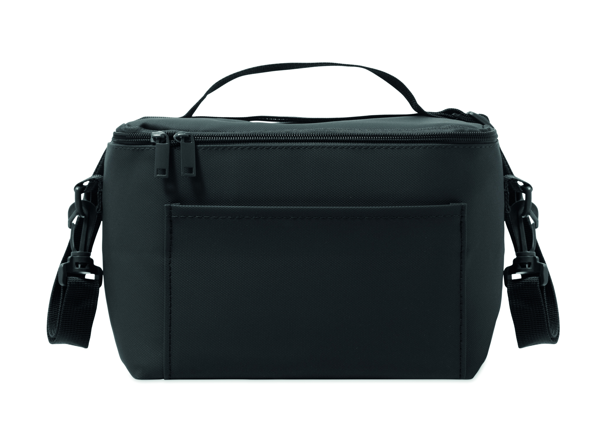 Kylväska i PU med foder av 100 g RPET-polyester. Inklusive 1 framficka, handtag och axelstöd. Isolerande PE-skum med PEVA-foder. Volym 5,5 l.