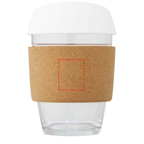 Enväggig termos med borosilikatglas med ett slätt korkgrepp. Har ett avtagbart livsmedelssäkert silikonlock. Termosen är tillverkad av 100 % hållbart borosilikatglas som bevarar färskheten i drycken och inte innehåller några skadliga kemikalier. Testad och godkänd enligt tysk lagstiftning om livsmedelssäkerhet (LFGB) och testad för ftalatinnehåll enligt REACH-förordningarna. Passar till de flesta kaffemaskinerna, vilket gör den till den perfekta termosen för jobbet när du är på språng. Volymkapacitet 360 ml. Genom att ta bort korkgreppet kan termosen diskas i diskmaskinen. Levereras i en återvunnen presentförpackning av kartong.