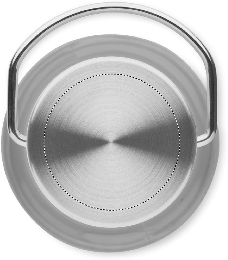 Vattenflaska i RPET som är BPA-fri och lock i rostfritt stål med handtag. Läcker inte. Kapacitet: 600 ml.