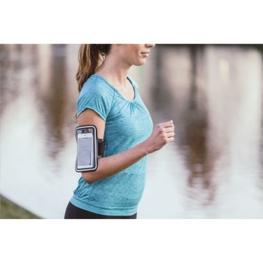 Justerbart sportarmband tillverkat av elastiskt, flexibelt och slitstarkt material. Med kardborreknäppning, speciell nyckelficka och genomskinligt telefonskydd med fluorescerande ram så att du är mer synlig i mörkret. Dims. ram 7,5 x 14,5 cm.