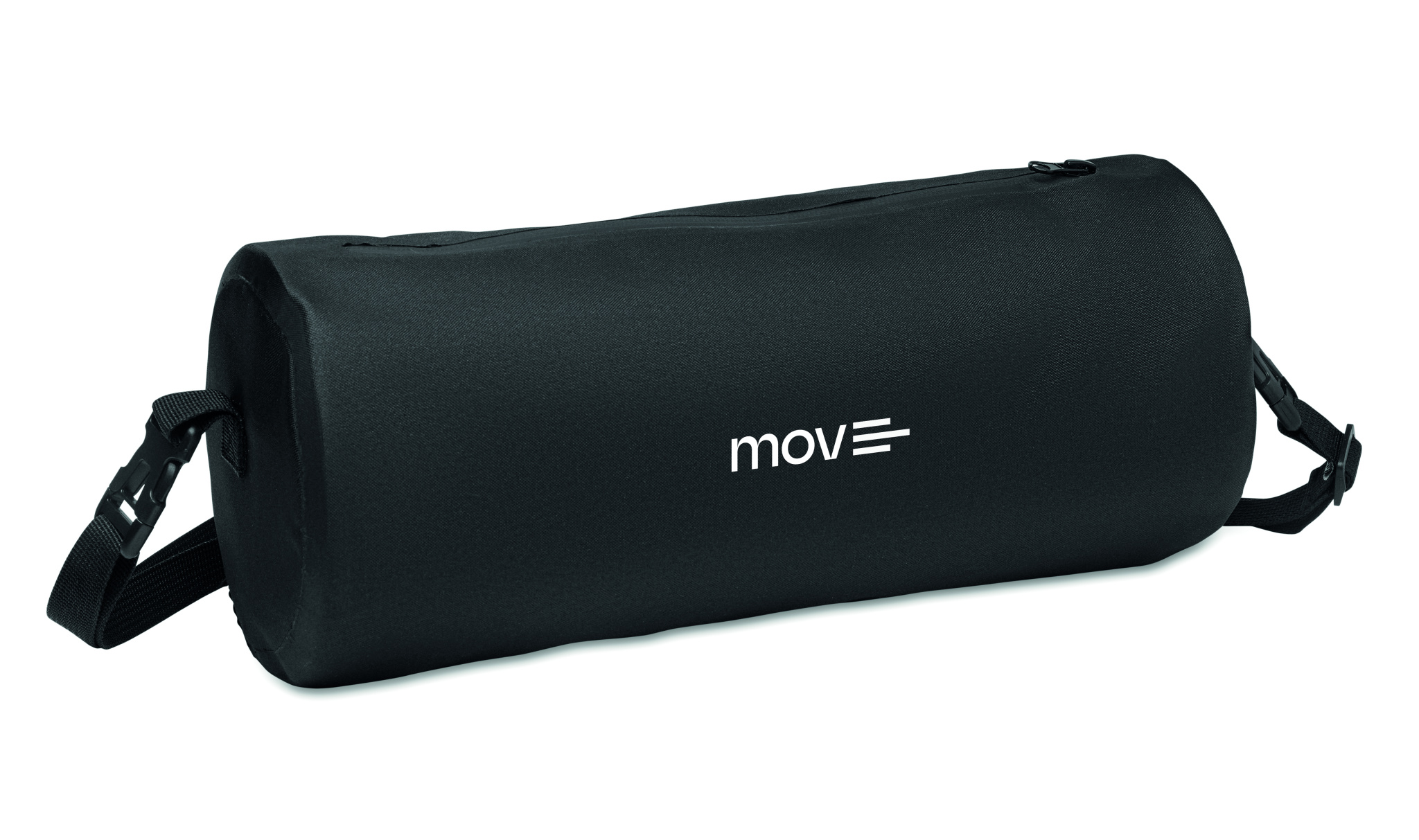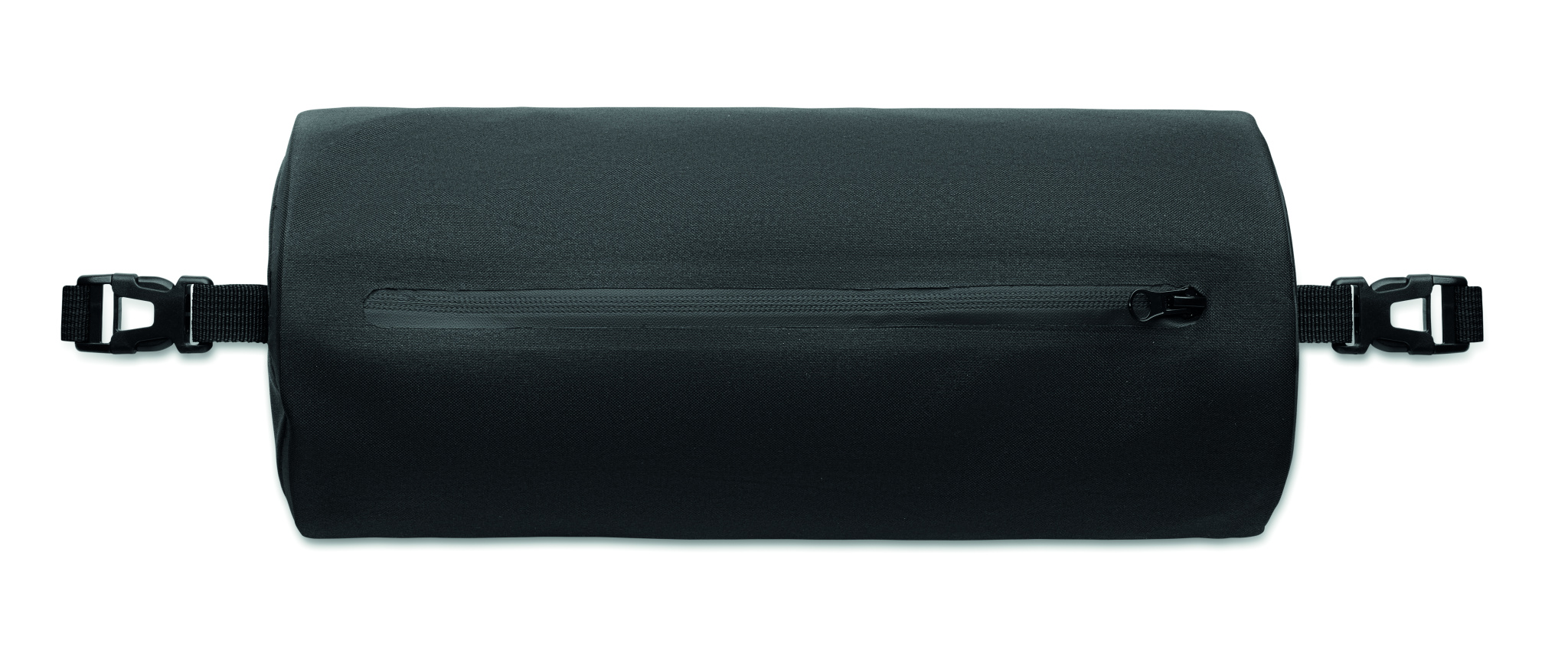 Sportväska i 300D RPET med PVC-beläggning. Den har avtagbara och justerbara axelremmar. Vattenavvisande tyg. volym 6L