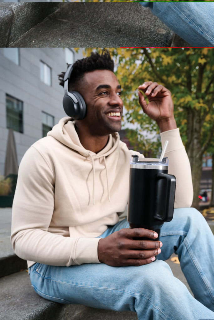 Möt Stadley, den ultimata 1200 ml-termomugg som är utformad för dem som behöver lite extra. Det bekväma handtaget och den smala basen gör den lätt att bära och passar in i de flesta mugghållare, så att du kan dricka när du är på språng. Stadleys dubbelväggiga, vakuumisolerade kropp är tillverkad av hållbart återvunnet rostfritt stål och håller drycken vid perfekt temperatur. Den har ett spillsäkert lock med en dubbel funktion för att sippa eller använda det medföljande sugröret av återvunnet stål med silikonspets. RCS-certifierad, med 29 % återvunnet innehåll och BPA-fri. Perfekt praktisk och miljövänlig, vi rekommenderar handtvätt. Bulkförpackad.