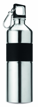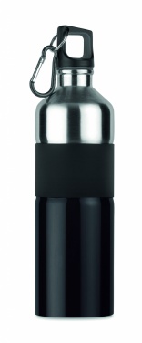Tvåfärgad dricksflaska i rostfritt stål med gummi grepp och karbinhake. 750 ml. Läckagefritt.