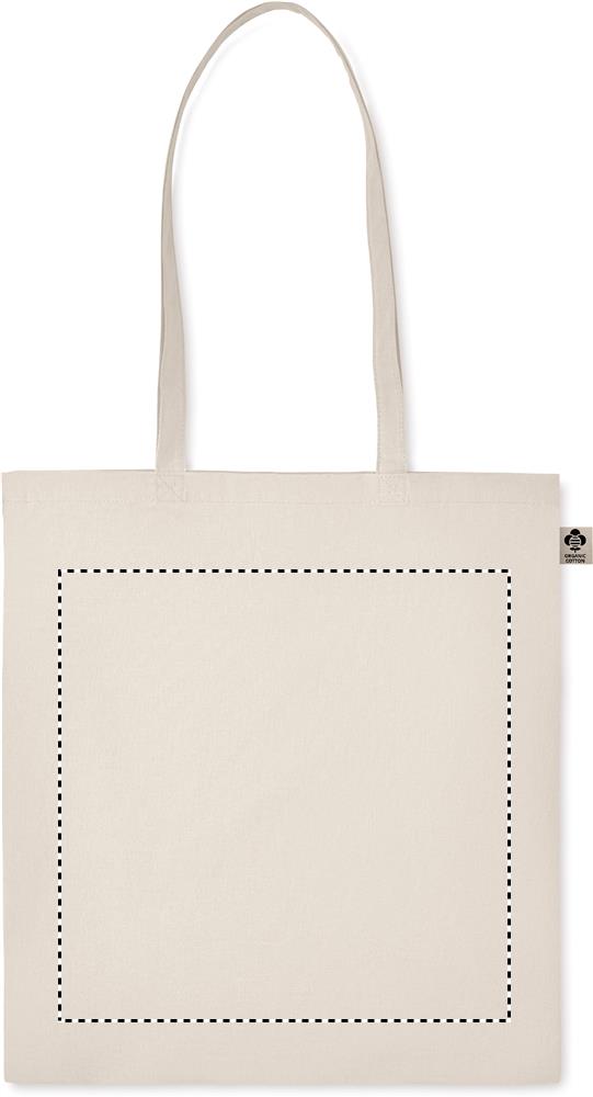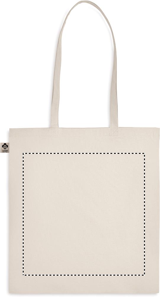 Kasse i ekologisk bomull med långa handtag. 140 gr/m².